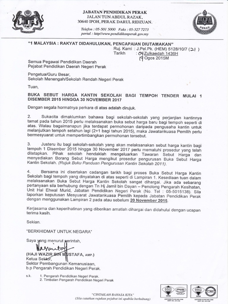 Contoh Surat Memohon Tender Kantin Surat Gambar