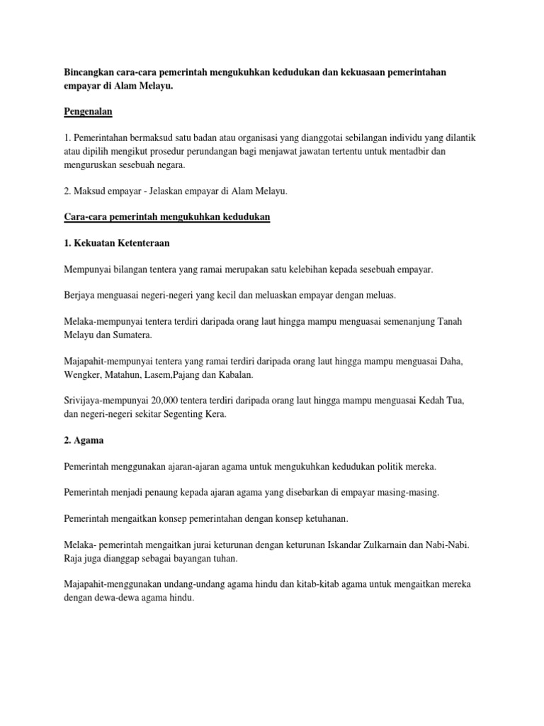 Bincangkan Cara Cara Pemerintah Mengukuhkan Kedudukan Dan Kekuasaan Pemerintahan Empayar Di Alam Melayu Pengenalan