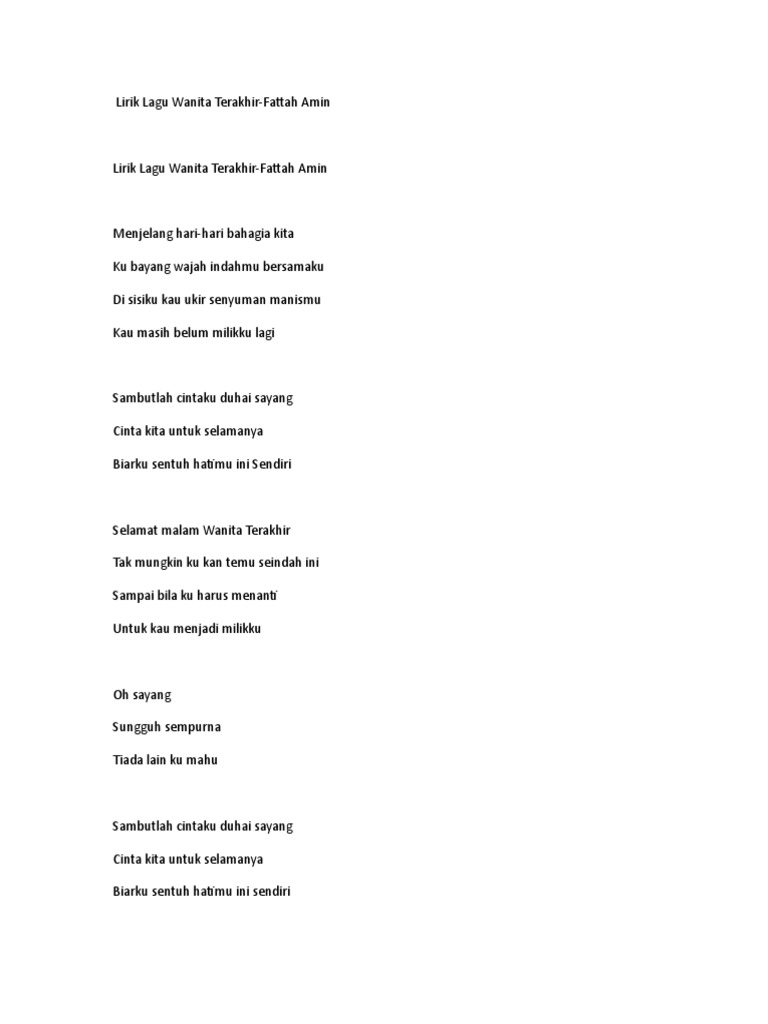 Lirik Lagu Fattah Amin Wanita Terakhir Song Lyrics Monster Local