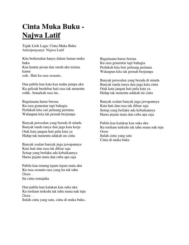 Cinta Muka Buku Lyrics By Najwa Latif Kita Berkenalan Hanya Dalam